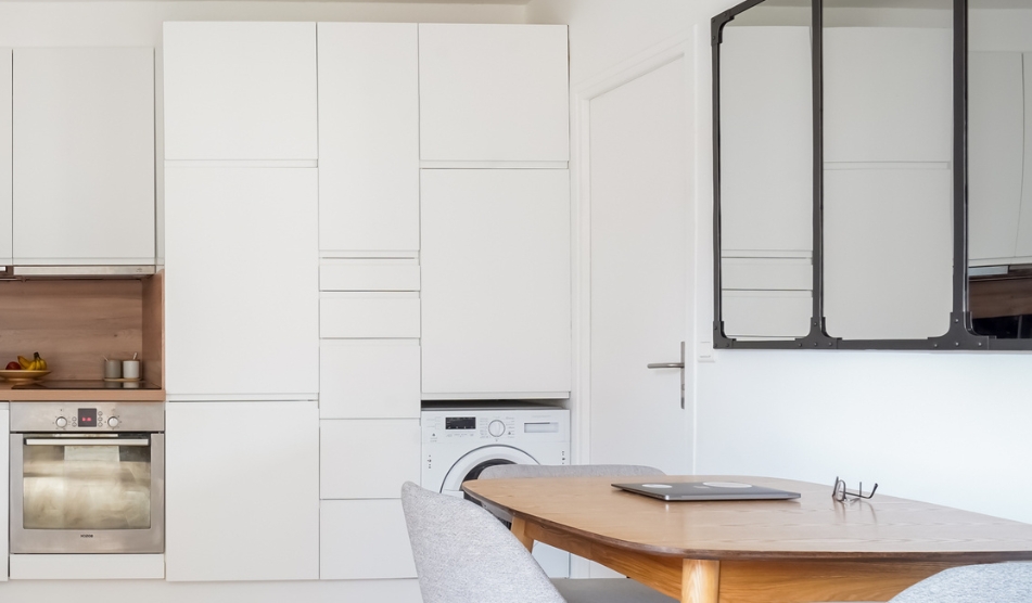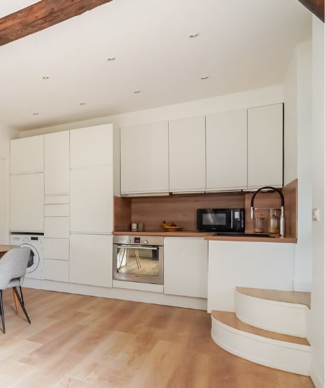 Dans cet appartement parisien baigné de lumière, le Studio WherDeco signe une rénovation écoresponsable et tout en douceur. La cuisine a été repensée dans un esprit slow et épuré, en conservant la structure existante et en optant pour nos façades Charlie blanc porcelaine satin. Un relooking simple et lumineux, fidèle à la philosophie du studio : faire mieux avec moins.