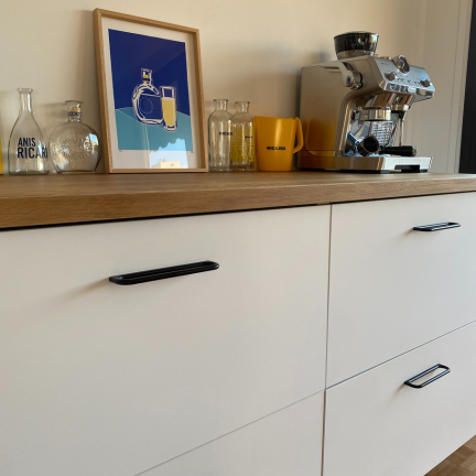 En renouvelant vos façades de meubles, plutôt que de tout changer, vous réduisez vos déchets de 60% à 80%. C’est une nouvelle façon d’aborder l’achat. Remplacer moins et mieux. De plus, nos produits sont majoritairement écoconçus et favorisent le circuit court puisqu’ils sont fabriqués en France, en Italie et Belgique.